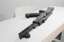 „Peng“, bestehend aus 928 identischen Legosteinen, stellt ein 3-dimensional verpixeltes AK47-Maschinengewehr dar – das meist produzierte Maschinengewehr der Welt kombiniert mit dem weltweit bekanntesten Kinder-Spielzeug.