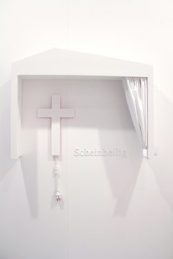 In diesem Experimentierfeld zwischen Religion und Massenkonsum entstehen die Arbeiten, die an der Doppelmoral des Gläubigen oder des Konsumenten kitzeln und die Grenzen zwischen Kultobjekt und Massenprodukt auflösen.